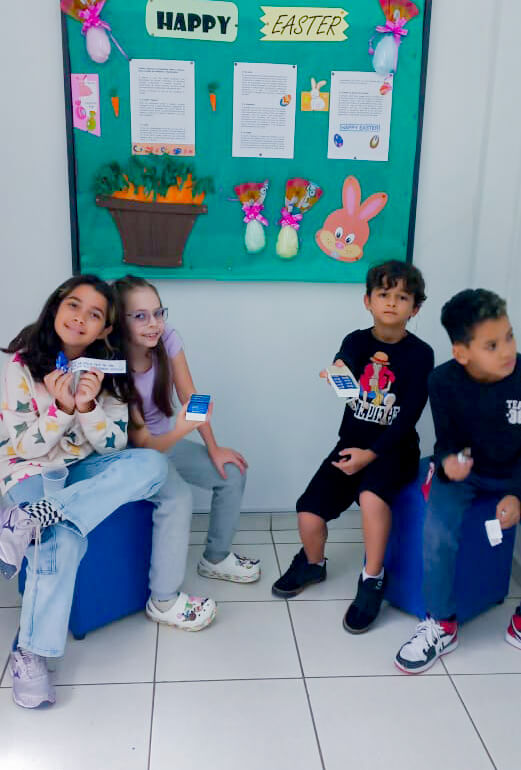 Entendemos que o aprendizado é um processo contínuo e evolutivo, originário das vivências individuais da criança e da interação constante com o idioma. Com base nessa filosofia, nosso método educacional está desenhado para que seu filho aprimore progressivamente suas habilidades de comunicação e compreensão da língua inglesa, por meio de um ambiente de imersão que promove a conversação e a interação desde o início do curso.